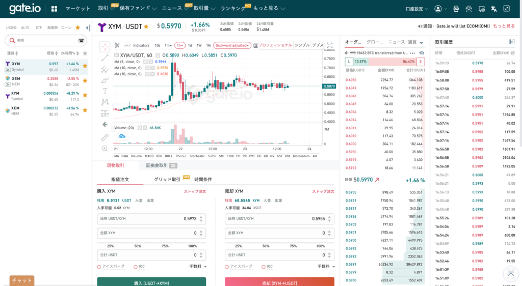 - 9日間まつ間、Gate.ioでXEM(NEM)を換金しXYM(Symbol)買い増し