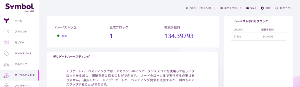 XYM(Symbol)のハーベスト設定が有効になったのが3/19のことだった。そこからまだかまだかと待ち続け、ついに3/30に記念すべき初のXYM(Symbol)のハーベストに成功したので顛末を記録する。