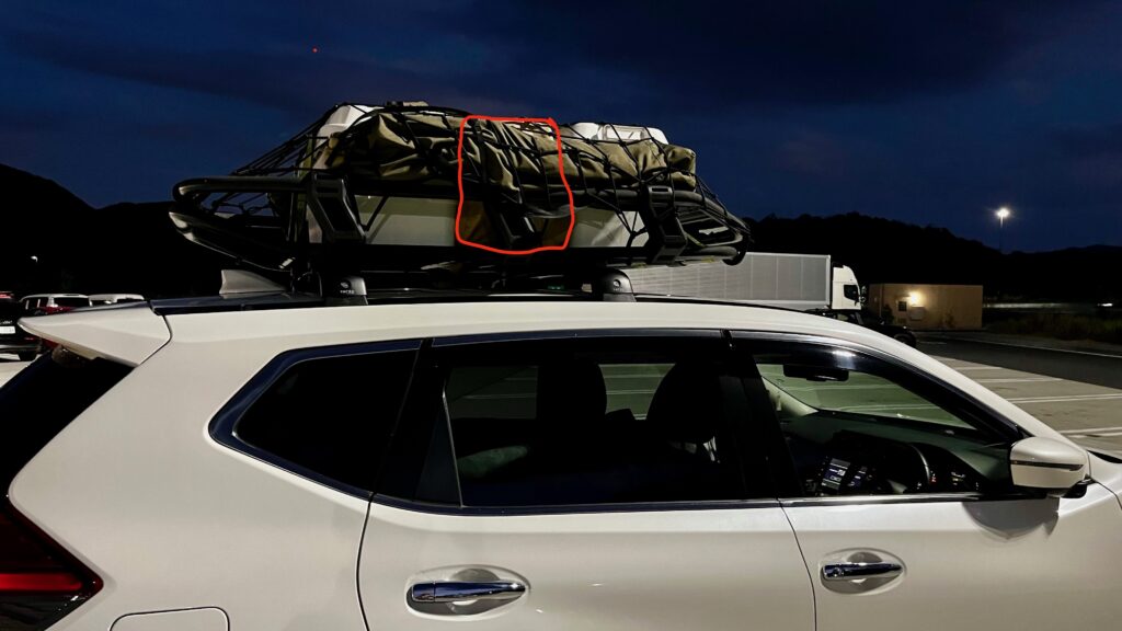 もし購入される場合はサイズ感は確かめたほうが良さそうである。そんな感じで、頑張ってルーフラックに積載して現地に向かい、昼過ぎには設営を済ませて初開封してみた。