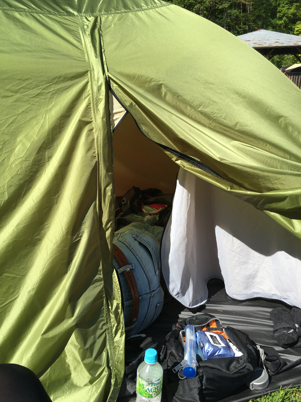 しかしフェスというのは、こうやってパッキングして準備している時間が一番楽しいのかもしれない。特に今回は5月ということもあってテントを調達。親父から拝借し、山岳用テント エアライズ(アライテント)を調達。寝袋も借りる。自分のものはサーマレスト Zライト ソルとヘリノックス位である。当日は東京駅から出発する直通バスに乗り込む。