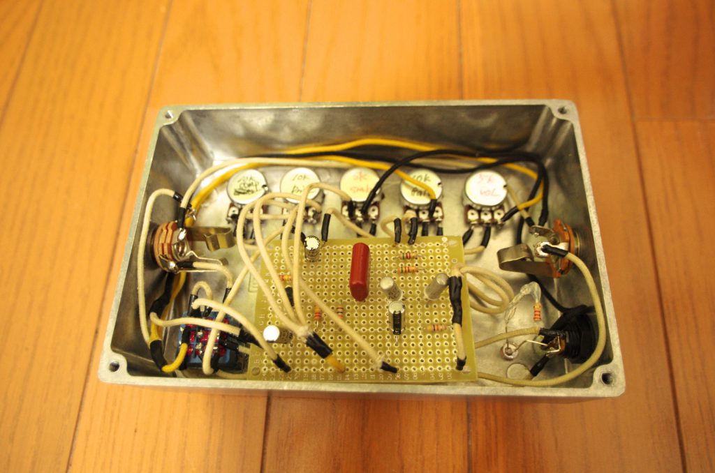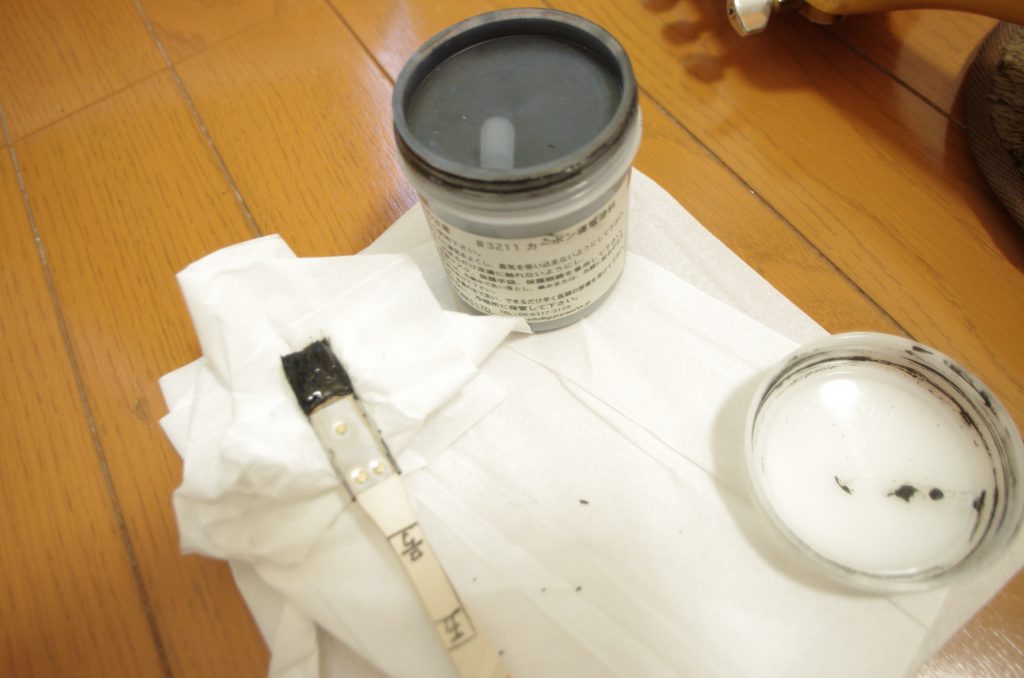 …今度は音がでない…四苦八苦しながら配線も見なおしてようやく音が出るようになった。やっと終わったと思ったら、よく聞いてみるとなんか音にへんなノイズが乗ってる…どうやら導電塗料とジャックが触っていたようで、付け直したら解消。