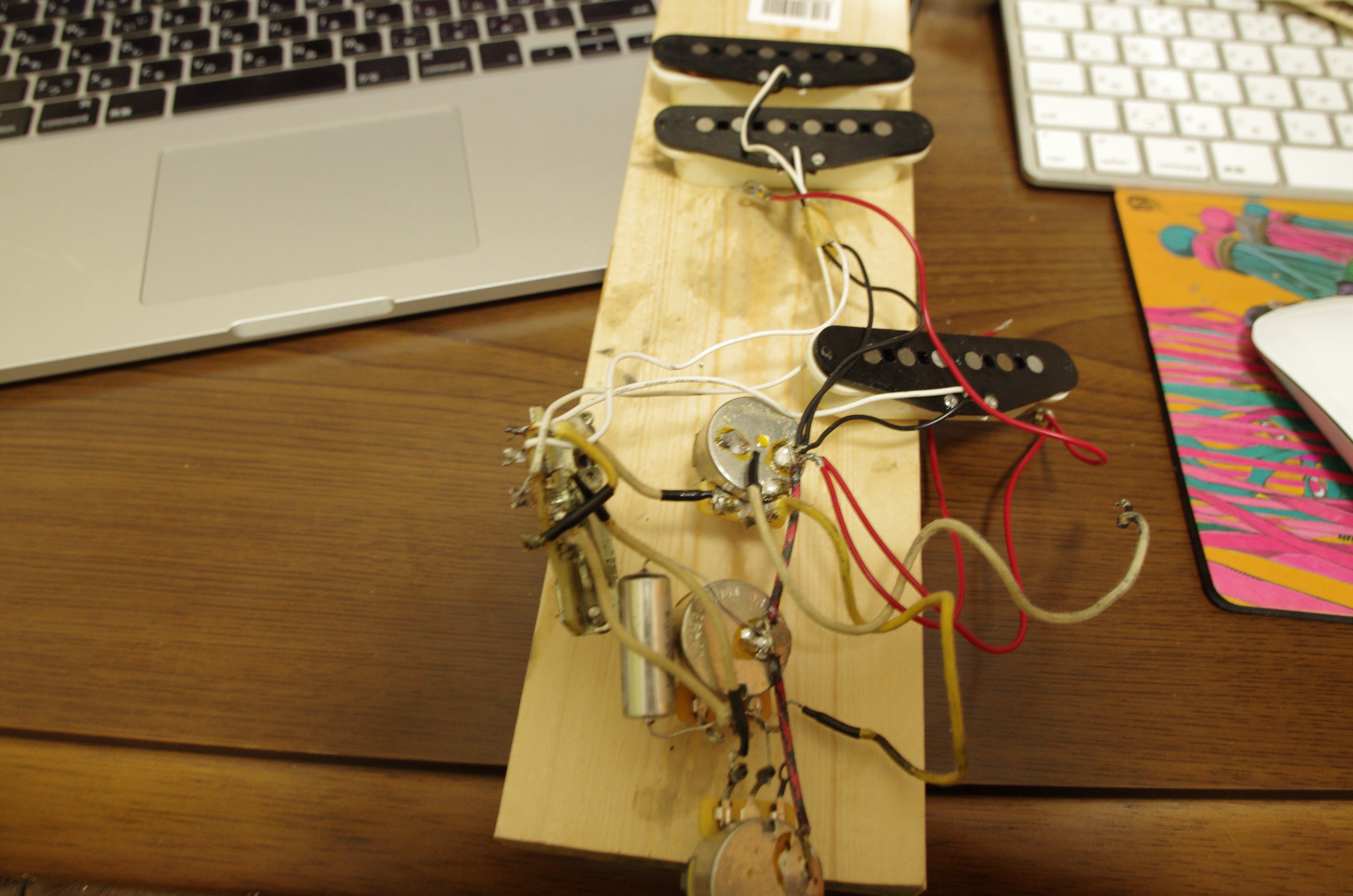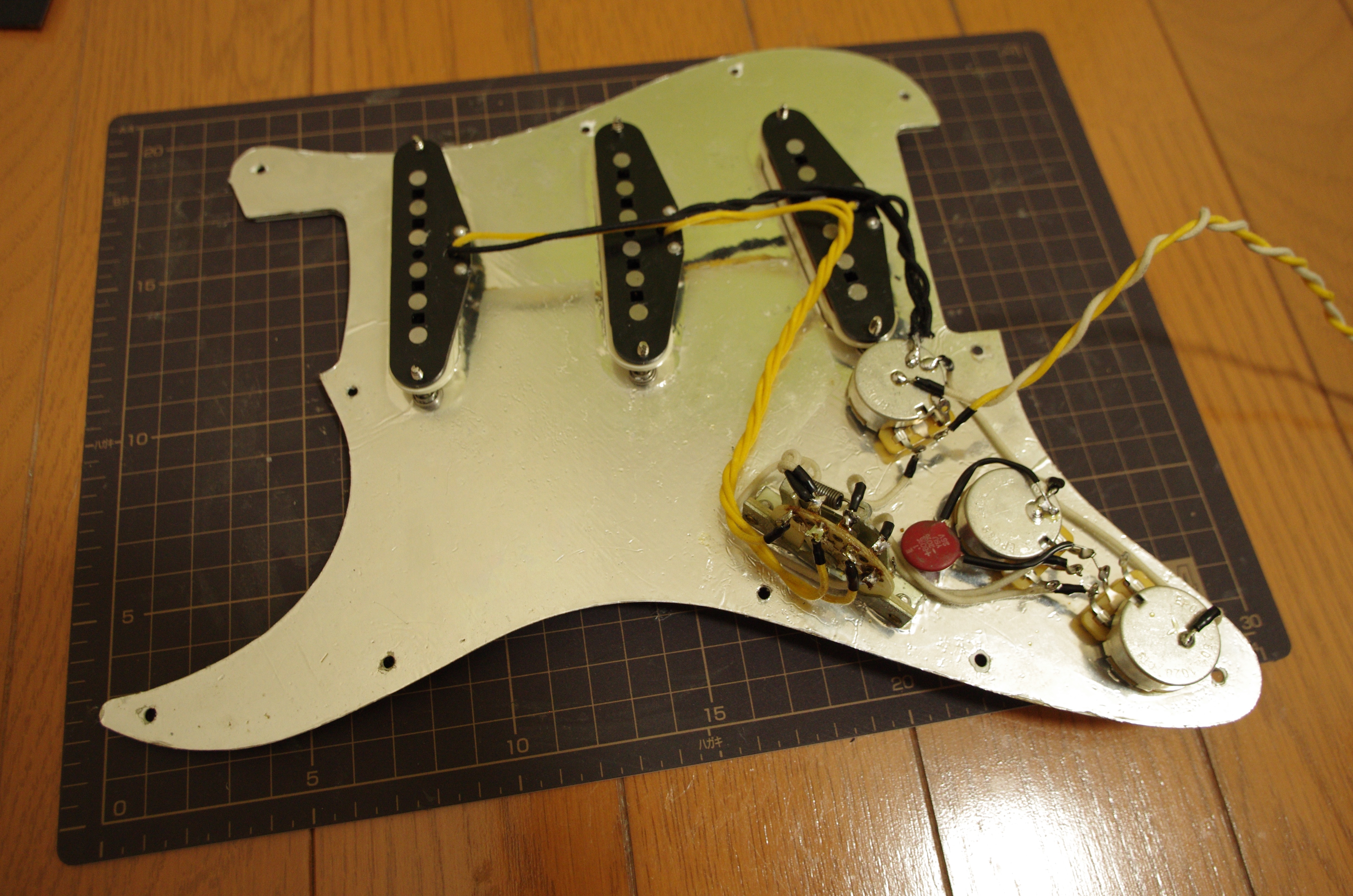とっくに完成してたが色々あり、書けず。ストラトのカスタマイズ完了。クロスワイヤーが太すぎて収めるのに苦労した。と思っていたらよくよく調べてみるといままでスイッチの配置を逆につけていたことが判明。