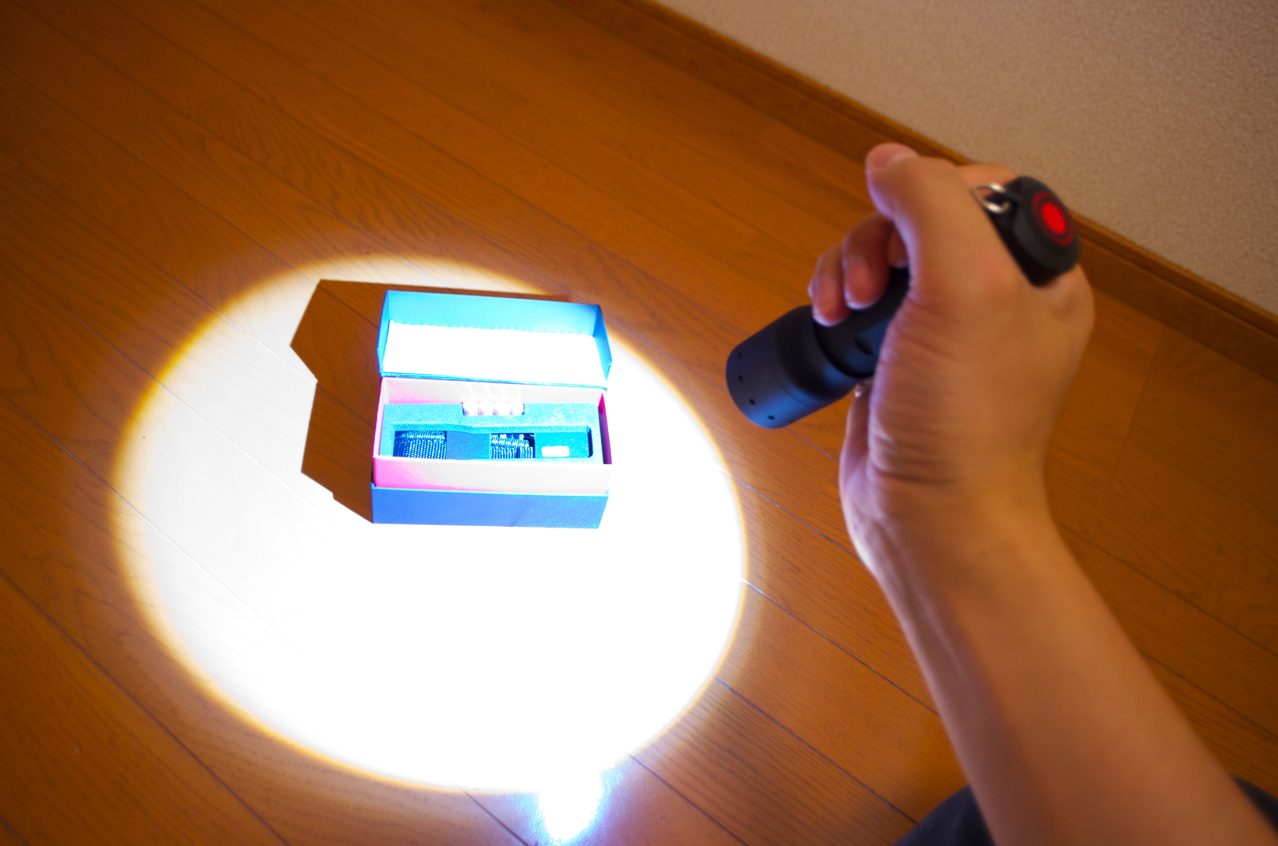ライトとしての性能で一番思うのが、まず非常に明るい。昔持っていたマグライトや家にあった懐中電灯といえば、昼間つけても暗いし電池なくなったら全然明るくないし…というものだったと思うが、LEDライトってこんな明るいのか…と驚かされる。