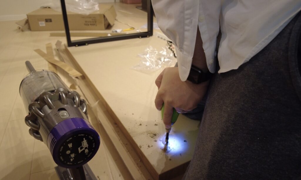 天板に下穴を開けるため9mmのビットを購入した。ドリルはホームセンターで買った2,000円くらいで買った安物である。オニメを埋め込む時に使うトルクレンチもちょうどいいサイズが家に合ったので購入していない。