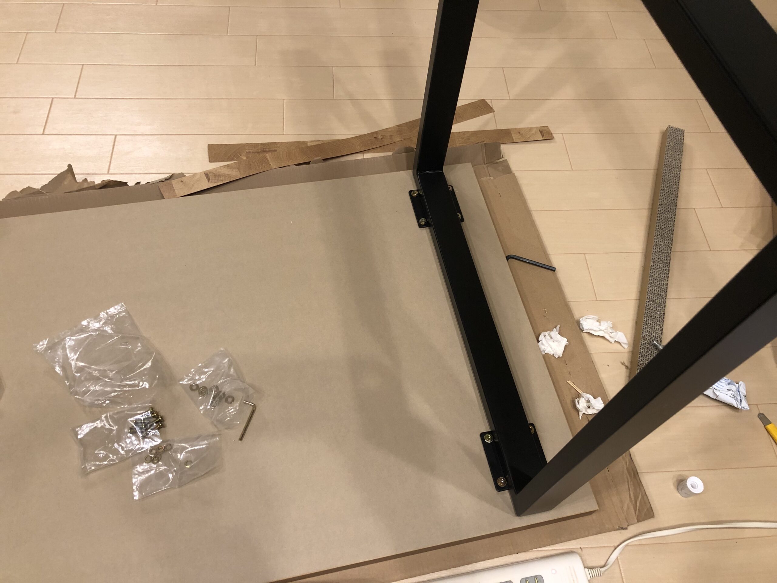 そうこうしているとイケアのキッチワークトップとAmazonで売っている脚をDIYしてオリジナルのデスクを作るのがブームらしいと知り、とりあえずどんな感じになるのか、人柱として自分のデスクを作成することになり、晴れてクローゼットから出ることが許された…