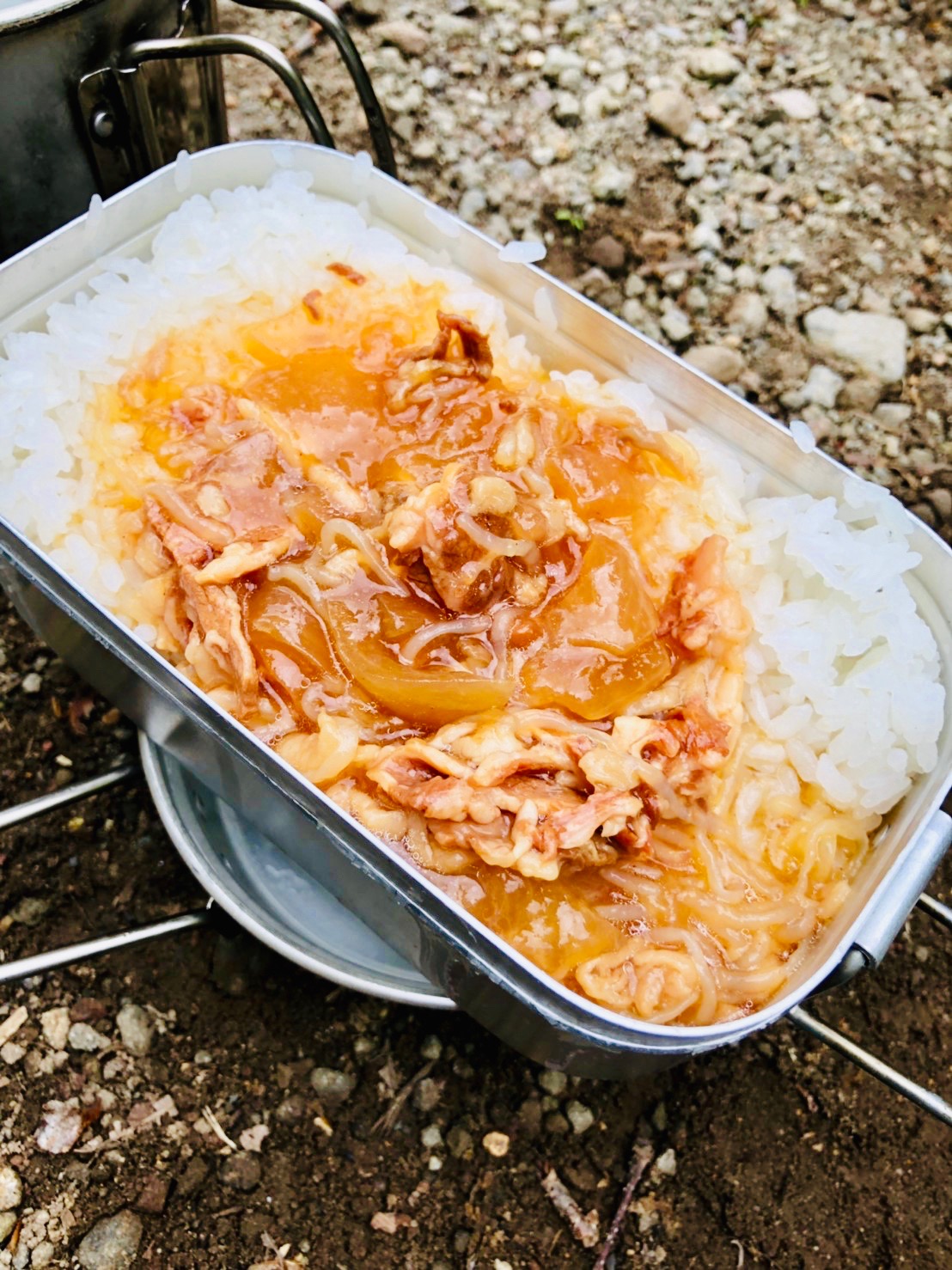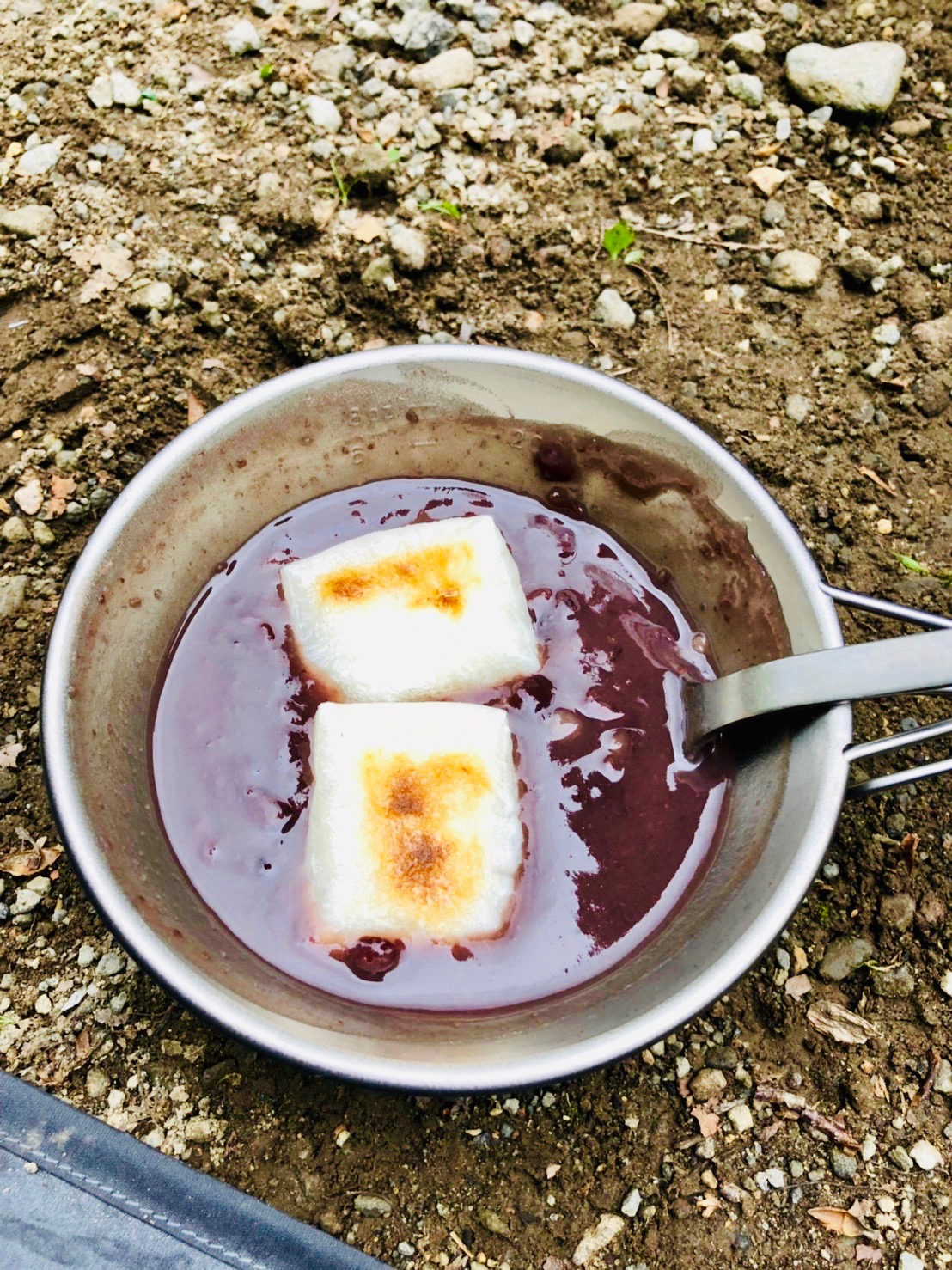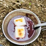 晩飯はメスティンで米を炊いて牛丼、スーパーで買った高級味噌汁とウインナー、さらに餅を焼いておしるこという高カロリー山飯を食らう。なぜ山で飯を食うとこんなうまいかはわからないが、とにかく米がうまい。メスティンがバカ売れするのもなんかわかる気がする。結局予報よりも遅れて21時、就寝する頃には雨が降ってきた。