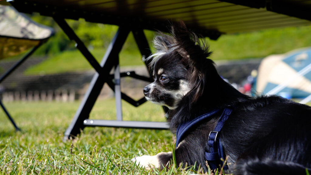 この日は最高に暑かったので、T/Cだろうが暑いものは暑かったのだが、それでも遮光性はリップストップとは段違い。設営時の暑さが落ち着き、椅子に座って風が吹くと心地よい。