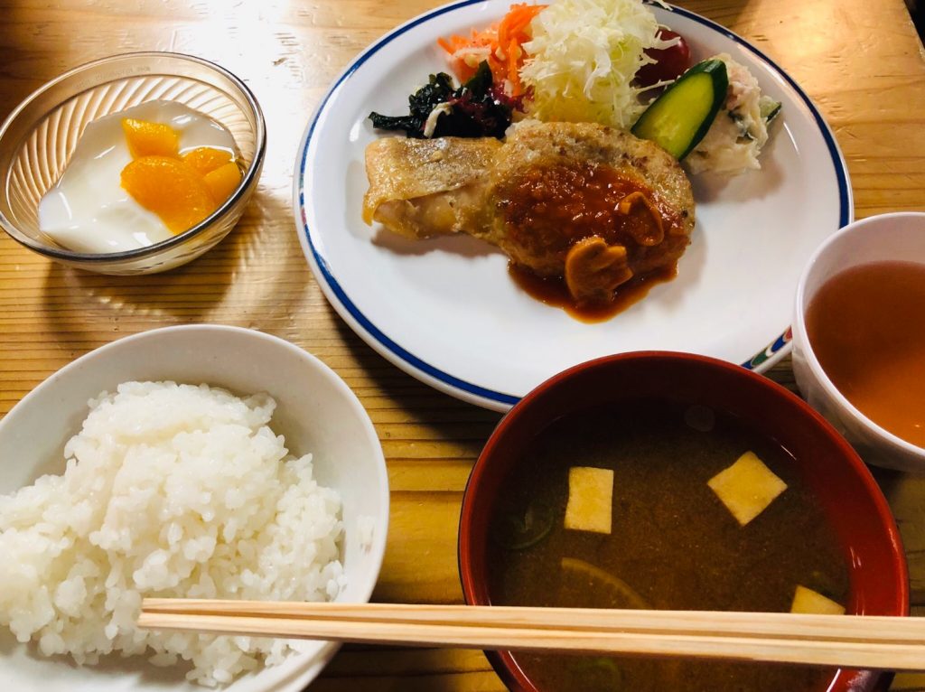 まったりした後はかなり早い晩飯へ。山の上とは思えないくらい豪華な晩飯である。山小屋は満員だったせいか晩飯は4回も交代で提供とのことだった。
