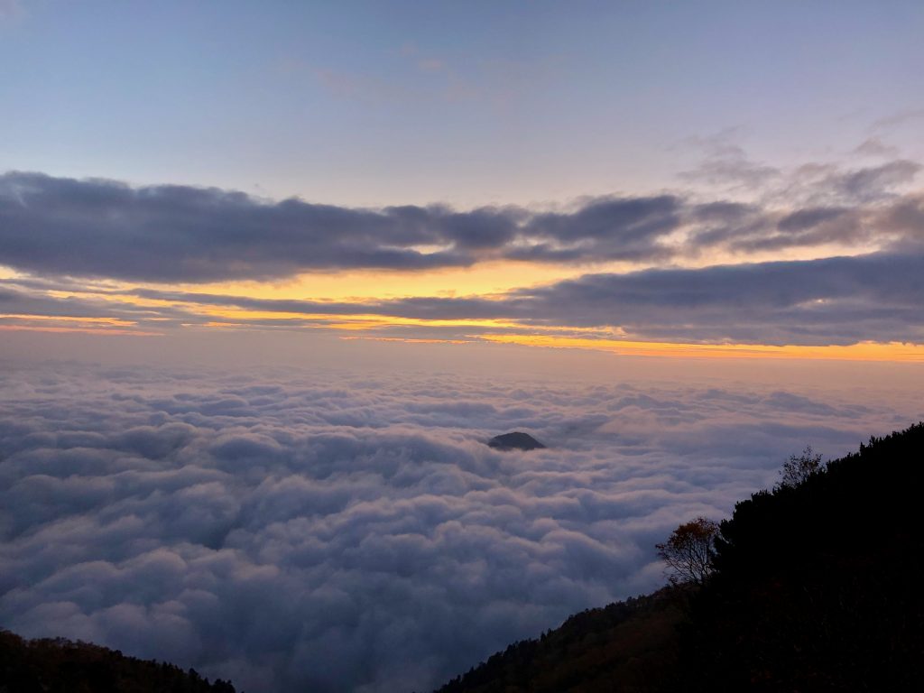 合戦小屋を過ぎると、これまでの樹林帯を抜けてだんだんと見晴らしがよくなってくる。目の前に広がる雲海が非常にいい感じ。晴れているので最高。