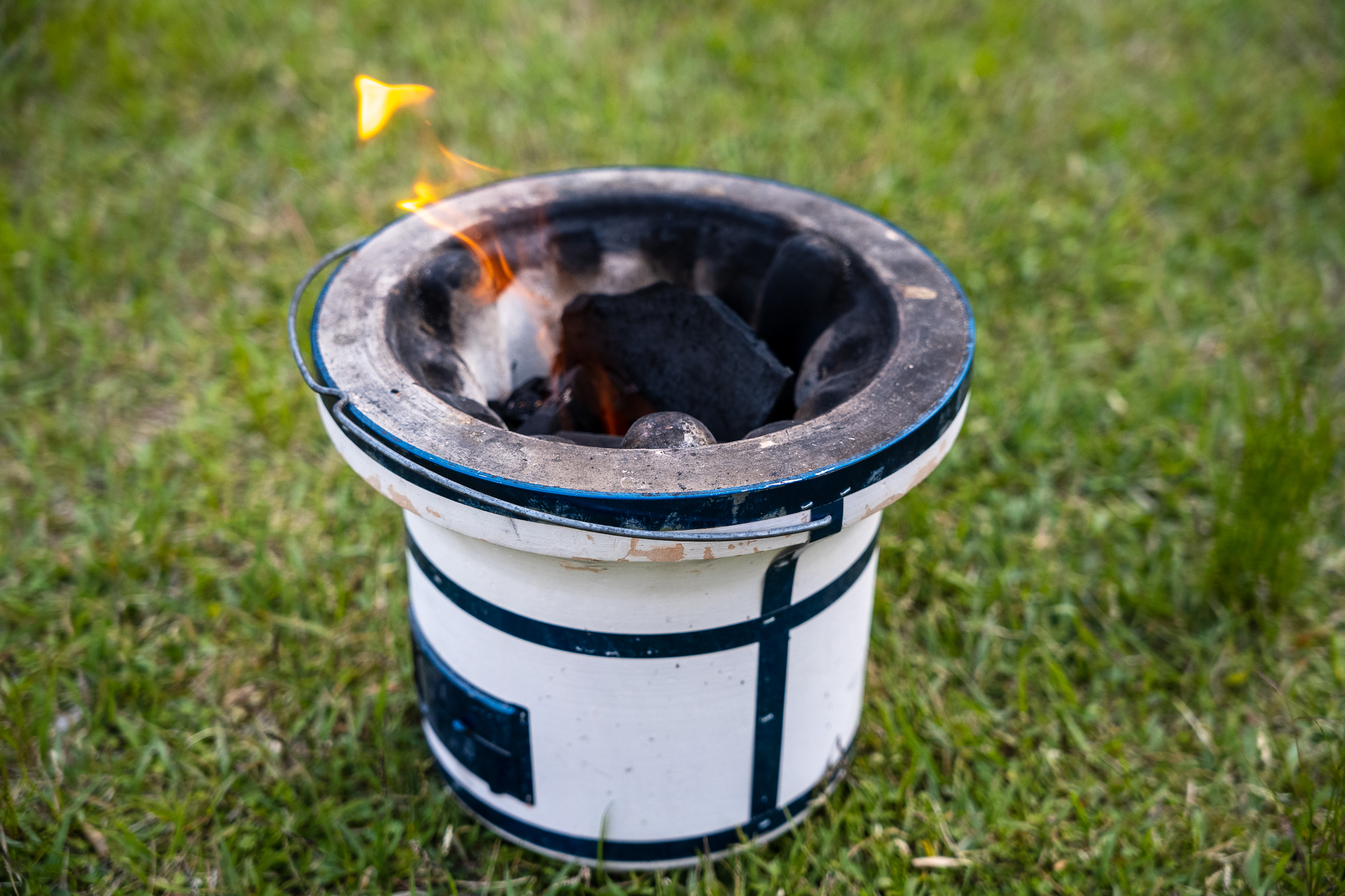 焚き火台はbelmontのtabi。今回で3回目の使用となるのだが、良い感じでチタンが焼けてきた。小型軽量だがかなりおしゃれで薪がよく燃える焚き火台。調理は七輪メインなので、tabiは純粋に焚き火を楽しむ用のツールになっている。一緒に買った火箸も軽くて使い易い。