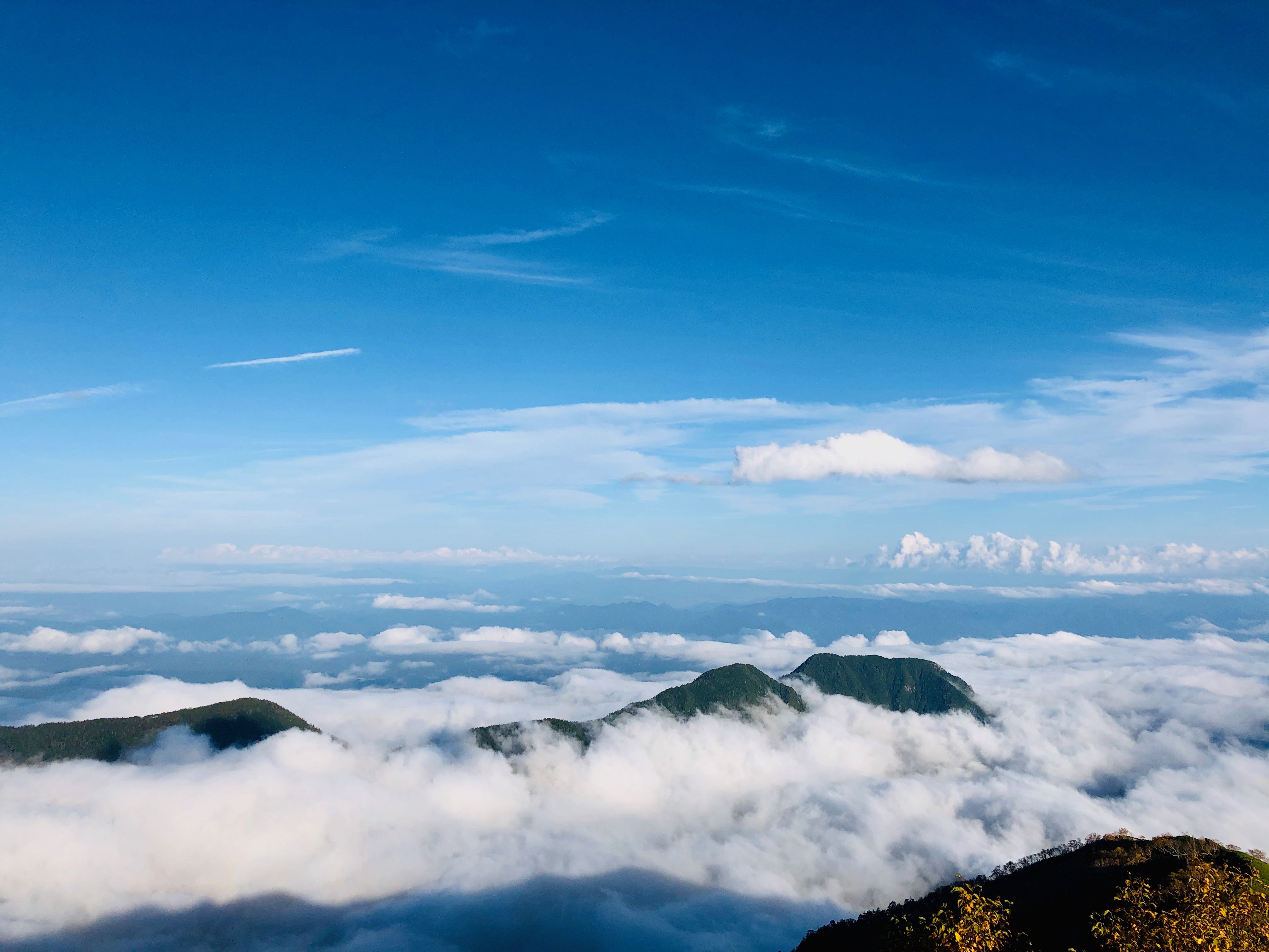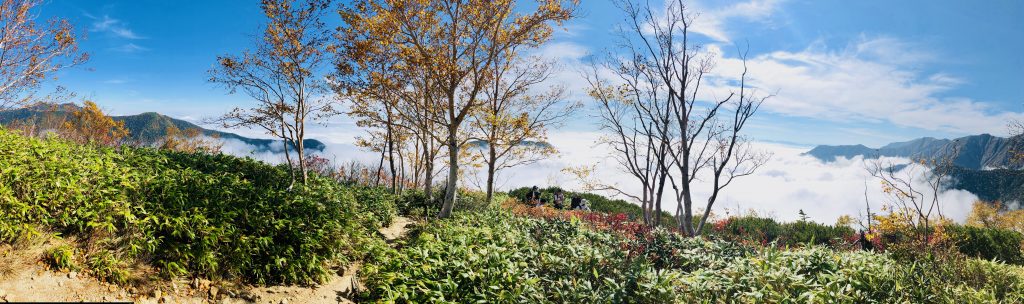 合戦小屋を過ぎると、これまでの樹林帯を抜けてだんだんと見晴らしがよくなってくる。目の前に広がる雲海が非常にいい感じ。晴れているので最高。