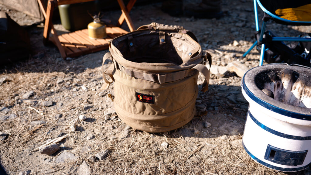 今回はそんな七輪にシンデレラフィットする、オレゴニアンキャンパーのトラッシュケースがあったので導入することにした。このケースは七輪のために作られたのではないかというくらいピッタリシンデレラフィットする。サイズ感は確かめてほしいが、七輪ユーザーにはかなりおすすめだと思った。クソダサい段ボールで運ばなくてよくなったのでありがたい。